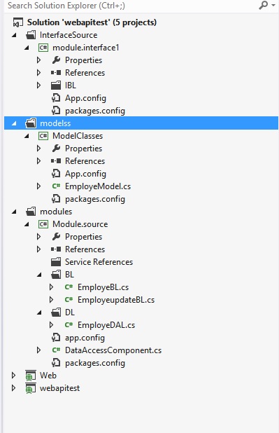 Inside this library we have a folder with the name IBL and IBL contains the interface with the name IEmploye. And IEmploye contains the declaration of some methods defined as follows: