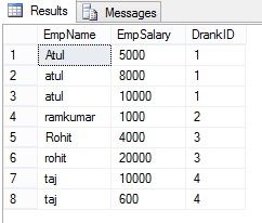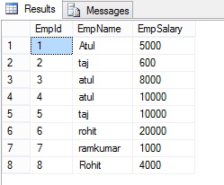 Here I have an Employe table, the following is the sample data for the  Employe Table.