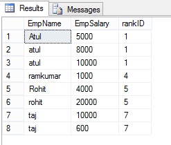 - SELECT EmpName, EmpSalary ,rank() over(order by EmpName) as rankID from Employe