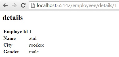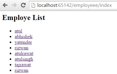 If we will click on any name of the Employe then the page will redirect to the detail page due to Hyperlinks using an Actionlink html helper.