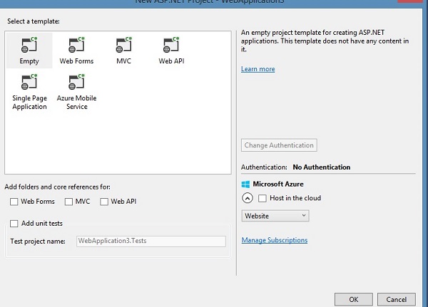 To create our OWIN application we will start by creating an ASP. NET project with empty template.