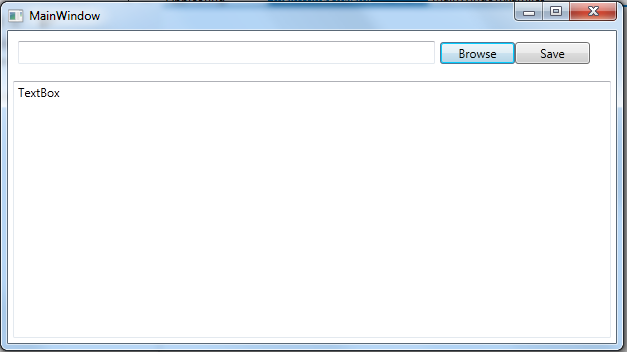 The preceding first line of code uses an Open File Dialog Box. The Open File Dialog Box does not exist in WPF, to use an OpenFileDialog control you need to reference the System.Windows.Forms namespace. A OpenFileDialog box is used to get the path of the config file. Open the file using the FileStream class and read the stream using the StreamReader class as in the code above. The FileStream and StreamReader classes are available in the System.IO namespace. After retrieving the stream from the config file close and flush the StreamReader and FileStream classes, retrieve the string form the stream reader using the ReadToEnd function of the StreamReader class and set the text of the TextBox to the contents of the config file.