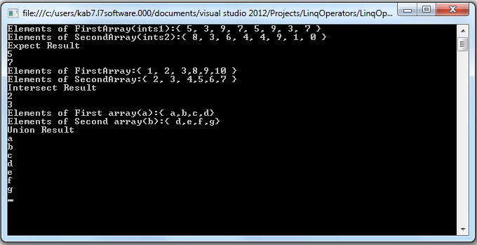 This article shows how to use expect, intersect and union of LINQ methods in C# and their differences. These are very effective functions of LINQ that confuse me every time. Here I will explain how to use these methods or functions when working with LINQ. These can decrease your development time when working with lists, arrays and collections.