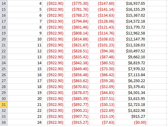 - setformula(2) = "=PPMT(Rate/12,A11,Year*Npayment,Amount,0)"