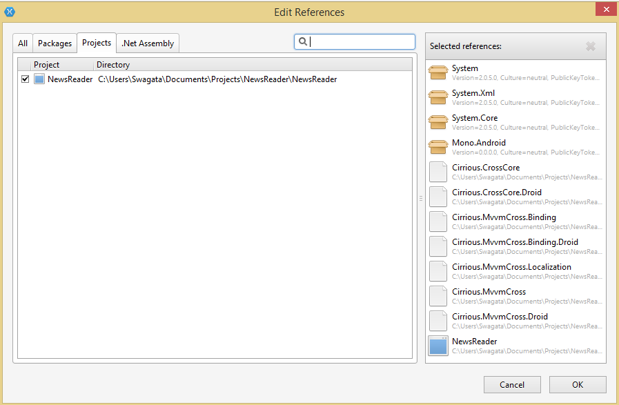 Now, we do have our Android project that would be based on our PCL. Now go to the project references and add our NewsReader PCL to the project reference.