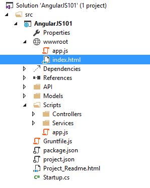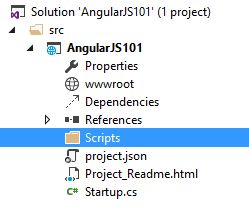 In the <script> section, you will see that I use Google CDN for referencing AngularJs and related libraries. Besides being lazy, it's my intent to use CDN for referencing standard libraries such as jQuery, AngularJs and Bootstrap to boost application performance. If you don't want to use CDN then you can always install AngularJs packages using Bower.