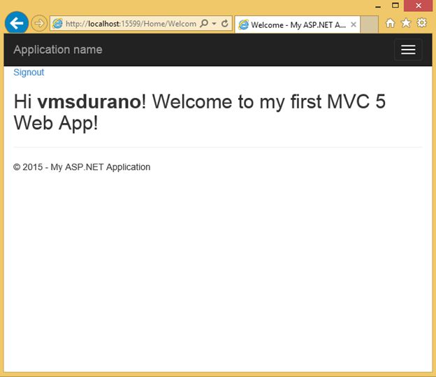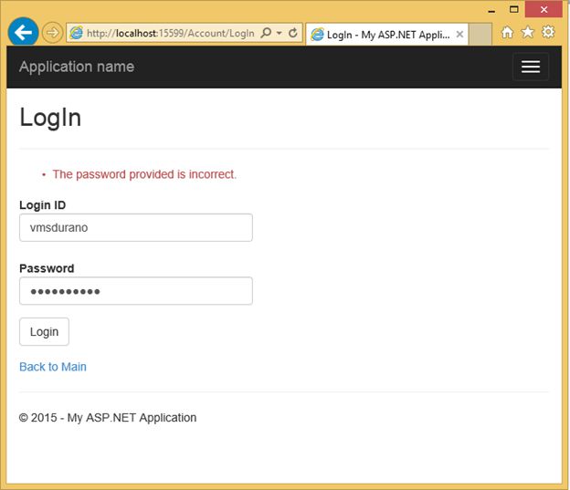 The second method will be triggered once the Button "LogIn" is fired. What it does is, first it will check if the required fields are supplied so it checks for ModelState.IsValid condition. It will then create an instance of the UserManager class and call the GetUserPassword() method by passing the user LoginName value supplied by the user. If the password returns an empty string then it will display an error to the view. If the password supplied is equal to the password retrieved from the database then it will redirect the user to the Welcome page, otherwise it will display an error stating that the login name or password supplied is invalid.