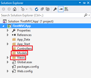 When you click on the OK button it'll create a project. Now open your solution to see the ASP.Net project where you will see three empty folders for Controllers, Model and Views for specific locations of Controller Classes and model class and also for View Pages.