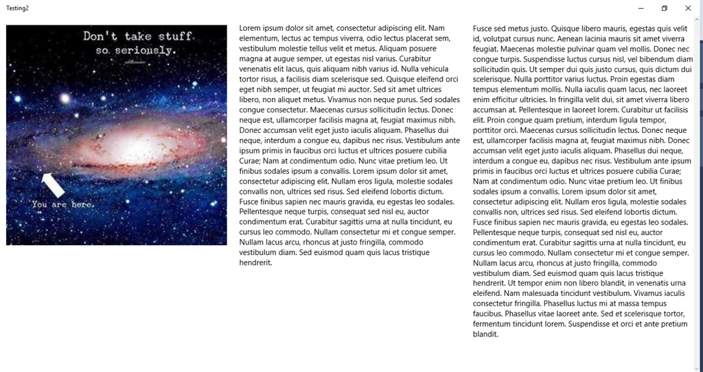 - Text="Lorem ipsum dolor sit amet, consectetur adipiscing elit. Nam elementum, lectus ac tempus viverra, odio lectus placerat sem, vestibulum molestie tellus velit et metus. Aliquam posuere magna at augue semper, ut egestas nisl varius. Curabitur venenatis elit lacus, quis aliquam nibh varius id. Nulla vehicula tortor risus, a facilisis diam scelerisque sed. Quisque eleifend orci eget nibh semper, ut feugiat mi auctor. Sed sit amet ultrices libero, non aliquet metus. Vivamus non neque purus. Sed sodales congue consectetur. Maecenas cursus sollicitudin lectus. Donec neque est, ullamcorper facilisis magna at, feugiat maximus nibh. Donec accumsan velit eget justo iaculis aliquam. Phasellus dui neque, interdum a congue eu, dapibus nec risus. Vestibulum ante ipsum primis in faucibus orci luctus et ultrices posuere cubilia Curae; Nam at condimentum odio. Nunc vitae pretium leo. Ut finibus sodales ipsum a convallis. Lorem ipsum dolor sit amet, consectetur adipiscing elit. Nullam eros ligula, molestie sodales convallis non, ultrices sed risus. Sed eleifend lobortis dictum. Fusce finibus sapien nec mauris gravida, eu egestas leo sodales. Pellentesque neque turpis, consequat sed nisl eu, auctor condimentum erat. Curabitur sagittis urna at nulla tincidunt, eu cursus leo commodo. Nullam consectetur mi et congue semper. Nullam lacus arcu, rhoncus at justo fringilla, commodo vestibulum diam. Sed euismod quam quis lacus tristique hendrerit." />