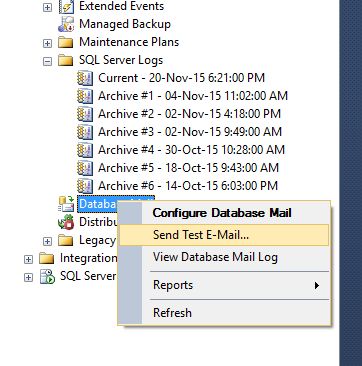 Step 1: Click on Management in your SQL Server Object  Explorer, the click on SQL Server Logs. After that click Configure Database  Mail as in the following screenshot,