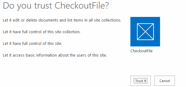 - url: appweburl + "/_api/SP.AppContextSite(@target)/web/getfilebyserverrelativeurl('/sites/apps/Shared Documents/filename1.txt')/checkout?@target='" + hostweburl + "'",