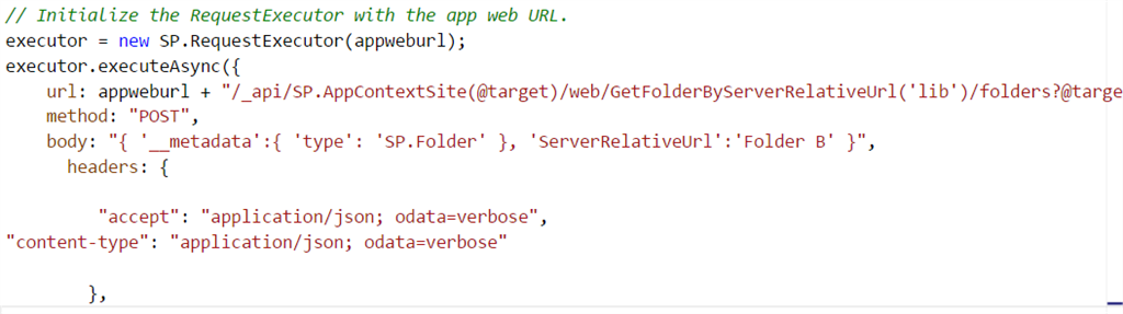 - body: "{ '__metadata':{ 'type': 'SP.Folder' }, 'ServerRelativeUrl':'Folder B' }",