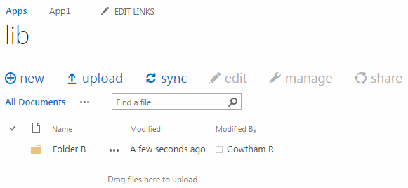 The folder has been created successfully in the Document Library SharePointLibraray.