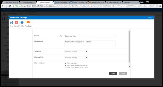 - Task List: Select the Task List to store all the tasks created by Nintex