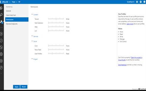 - In the Social category, set the Read permissions for the User Profiles scope.