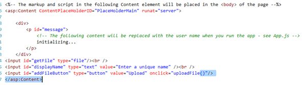 - <input id="addFileButton" type="button" value="Upload" onclick="uploadFile()"/>