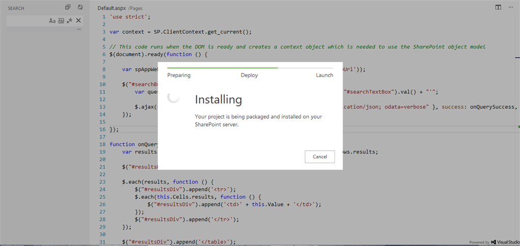 Default ASPX: Now, edit Default.aspx to add the HTML for our search box and button as well as a div tag to hold the results.