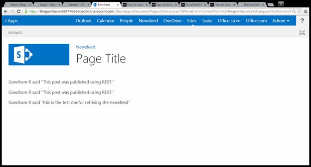 Here I explain how to retrieve the newsfeed followed by the current user in SharePoint 2013 using the REST API and displaying it in the SharePoint page in the app model.