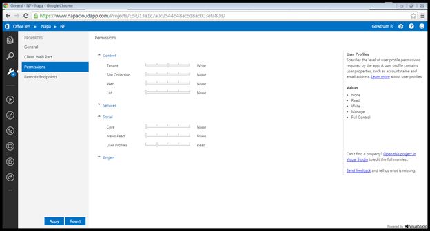 - In the Social category, set Read permissions for the User Profiles scope.
