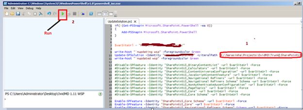 - Update-SPSolution –Identity "WKH.MR.OvidMD.wsp" –LiteralPath "C:\Narasimha\Projects\Code