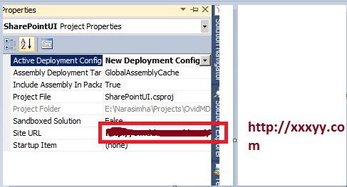 You will get a properties window as in the following on right side. Set the Site URL of your project like: