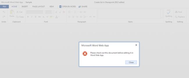 Step 7: Before edit the document, you should check-out the document first, otherwise you will get message box as shown below.