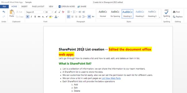 In this article we have explored the SharePoint office web apps feature advantages and how to view and edit the document in browser.