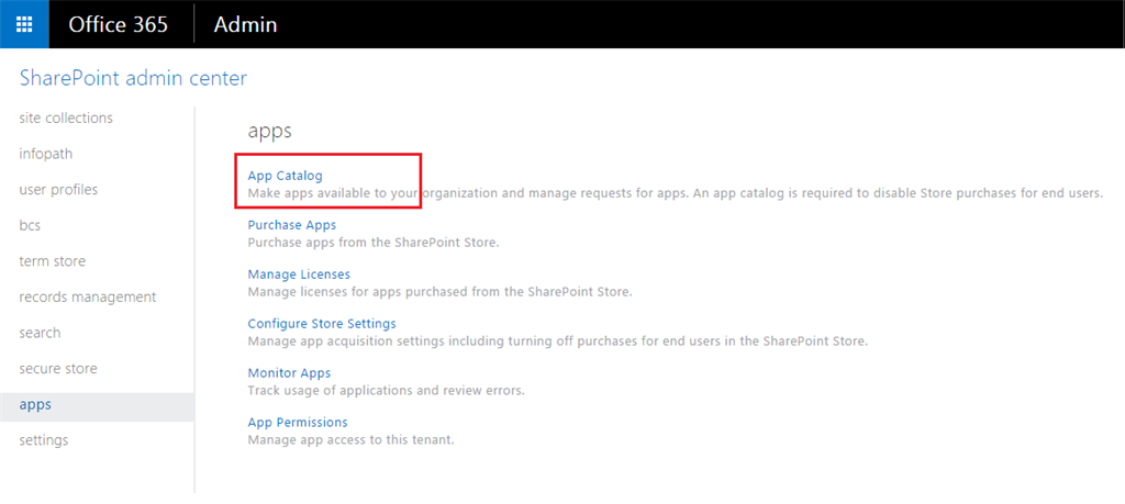 In SharePoint Online we can deploy the app directly to the developer site using Visual studio, but we need to add the app in app catalog for installing the app in Team site, Project site, community site, etc. Steps: Follow the below steps to upload a .app file in app catalog. Step 1: Go the admin Portal in your SharePoint Online Tenant. Step 2: From Left navigation click on the “apps” to go to app catalog Step 3: On the Apps page select the “App Catalog”. Step 4: Then you will be navigated to the app catalog site. Note If you haven’t created the app catalog site before, it will ask you to create new app catalog. Provide the app catalog name and on clicking ok the app catalog site will be created. Step 5: Then click on the “Apps for SharePoint” from the left navigation. Step 6: On the “AppCatalog” library you can upload the file using upload option. Step 7: Once you choose the file click ok to upload the file, Finally your app will be successfully uploaded in app catalog library. Summary In this article we have explored how to upload an app file in app catalog.