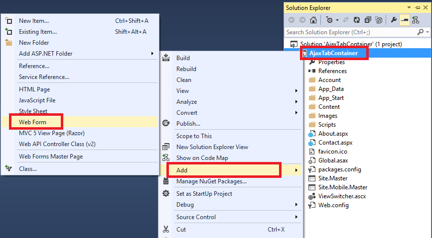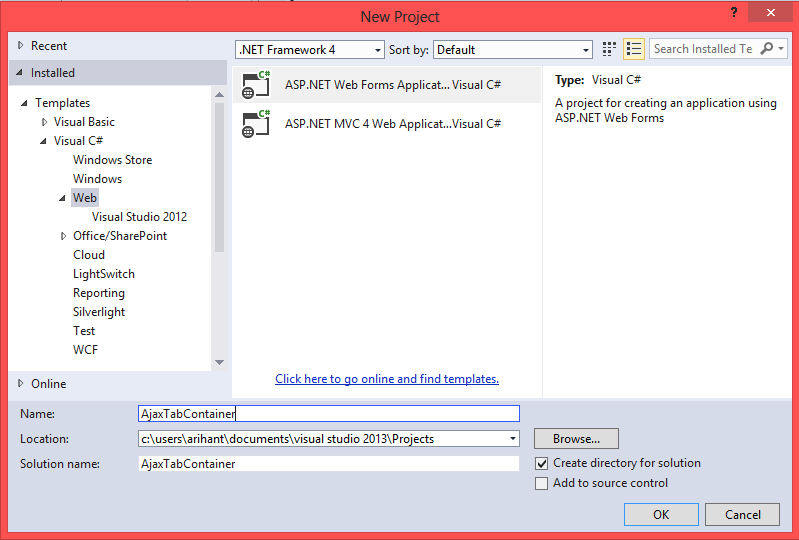 First we will create a new project that is an ASP.NET WebApplication named AjaxTabContainer.