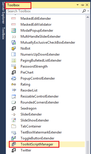We will now open the Toolbox then select the Ajax Pane and drag ToolkitScriptManager to the div tag inside the WebForm.