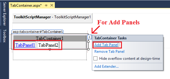 It will create a new Tab Panels in our TabContainer control, here we will create two Tab Panels.