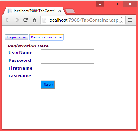 - <asp:TabPanel ID="TabPanel2" runat="server" HeaderText="Registration Form">