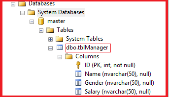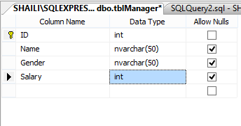 First of all we will create a table named tblManager using the following query.