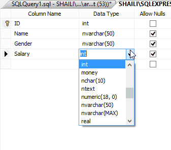 Now we will open the Design view of the table and here the DataType of the Salary column is int.