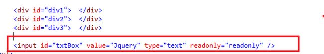 <input id="txtBox" value="Jquery" type="text" readonly="readonly" />