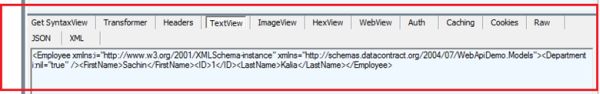 Open the Web proxy tool Fiddler and paste the following URL (http://localhost:57888/api/Employees/001) into the composer tab specifying Accept: application/xml in the Request Headers text box.