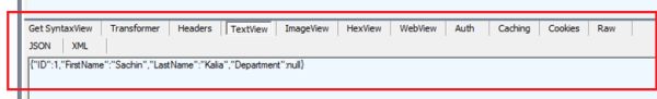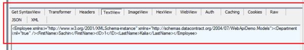 To see the result that the WebApi has provided, you must click on the inspector tab and then TextView. You will see the output as in the following window.
