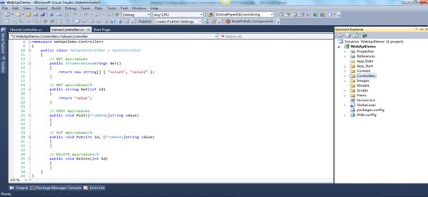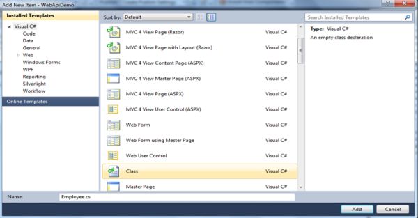 Step 1: Let's first create a sample web application using an ASP.NET MVC 4 Web Application and name it as you choose; I used WebApiDemo as shown in the image below: