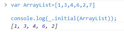 Returns everything but the last entry of the array. Especially useful on the arguments object. Pass n to exclude the last n elements from the result.
