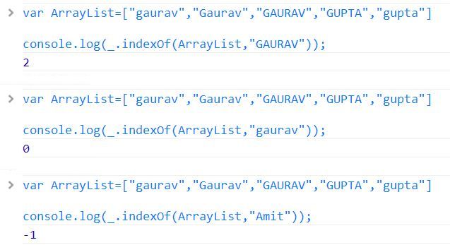 To use indexOf() we supply the array to search as the first argument and the term we are searching for as the second. There is also a third argument that takes a Boolean indicating whether the array is already sorted, that runs a much faster search algorithm like the earlier one uniq().