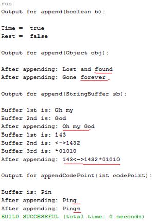 - System.out.println("Output for append(StringBuffer sb):");