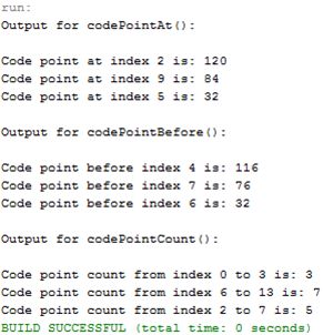 - System.out.println("Code point count from index 0 to 3 is: " + cP7);