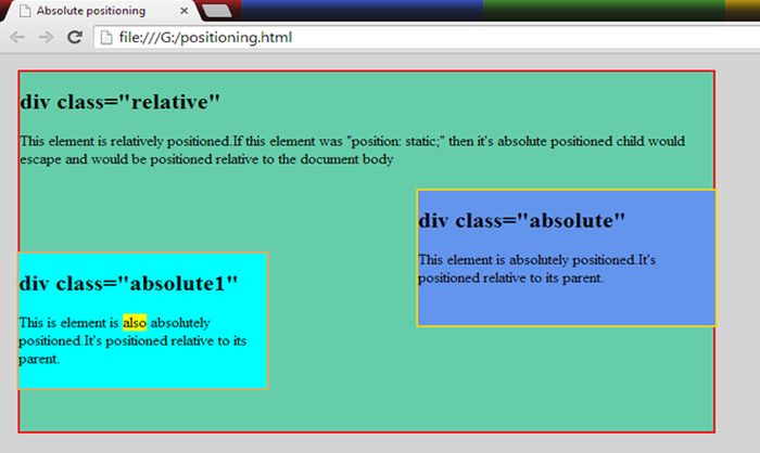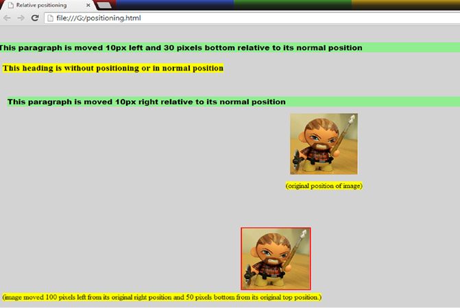 In the preceding example, you can see the positions of the elements that are changed due to relative positioning.