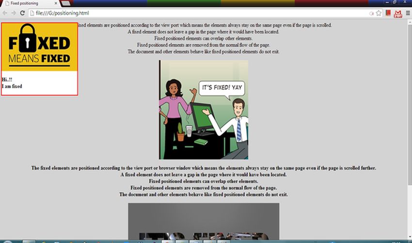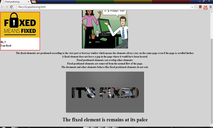 In the preceding example, you can see that the fixed positioned element remains at its place even after scrolling the page further.