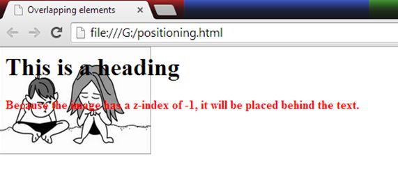 - <p><font color="red"><b>Because the image has a z-index of -1, it will be placed behind the text.</b></font></p>
