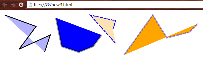 - <polyline points="390,60 400,30 310,10 400,110" style="fill:orange;stroke:blue;stroke-width:3; stroke-dasharray:10 3; fill-opacity:0.3" />