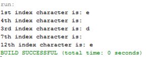 In the preceding output we can observe that a few index values do not have any character since it has white space and that's why the 4th and 7th index values do not return any character in the output.