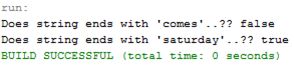 - System.out.println("Does string ends with 'saturday'..?? "+str1.endsWith("saturday"));