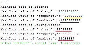 String & StringBuffer hashcode testWith this example we can check the various hashcode values returned by the two classes.