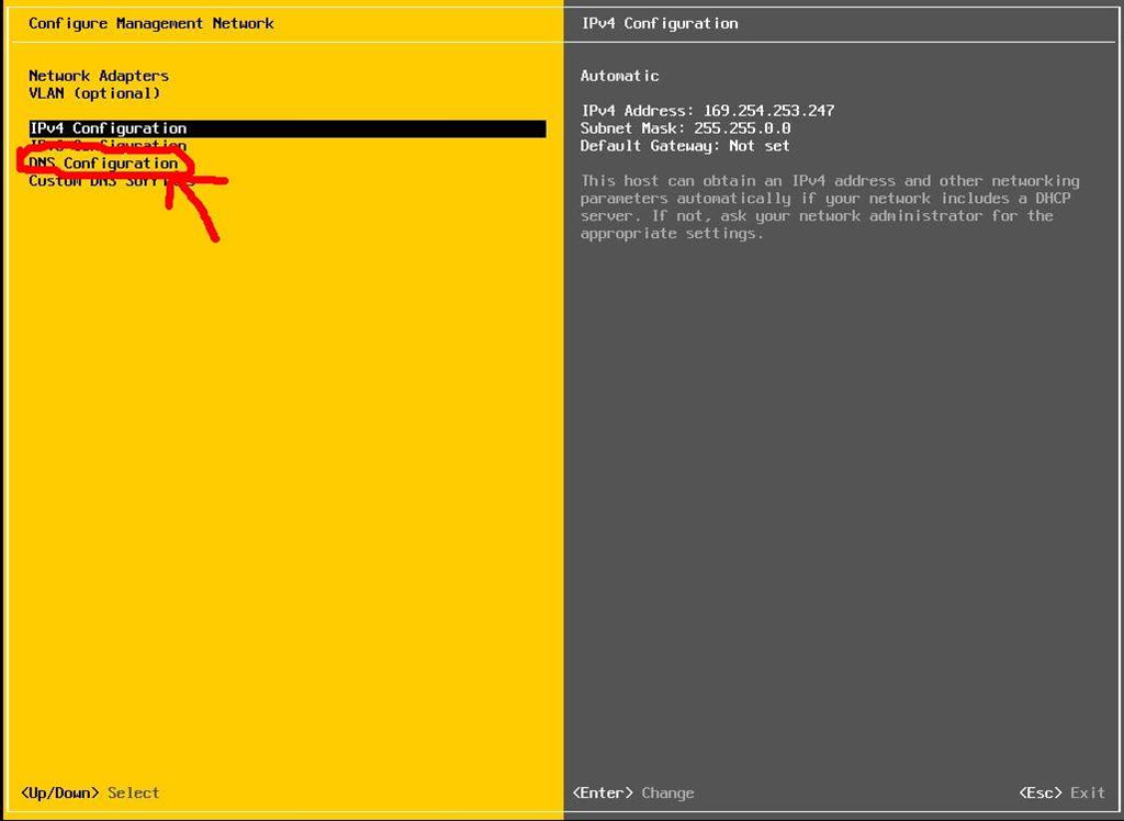 - Go to DNS configuration, enter hostname which you want to set to the server (host) and click ESC key to come out of configuration page.